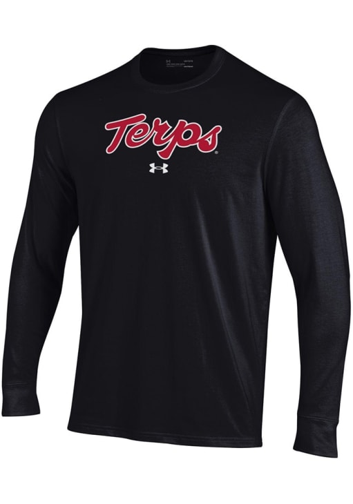 Show your Maryland Terrapins spirit in this Maryland Black T Shirt! This Maryland Performance Long Sleeve T Shirt makes a great layer for cooler nights cheering on the Terrapins. Featuring a screen print graphics, this Maryland Terrapins Long Sleeve Tee is an essential addition for every fan. Go Terps!