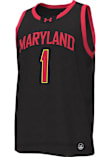 Stand out and showcase your unwavering Maryland pride with confidence in this striking Maryland Terrapins Mens Black Replica 1 Jersey! Make a statement on gameday with this eye-catching Maryland Terrapins Basketball Jersey, which features a screenprint of team name and number on front with number on back.