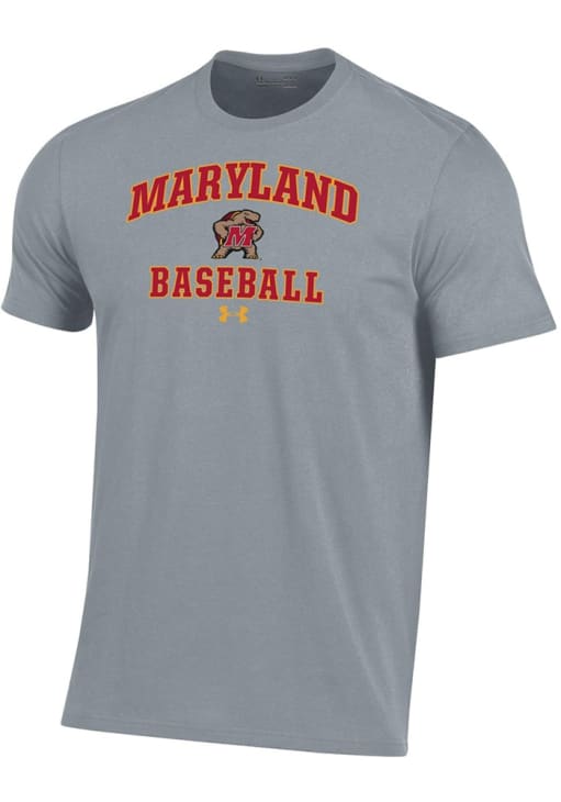 Display your team spirit with this remarkable Maryland Terrapins Under Armour Grey Baseball Performance Short Sleeve T Shirt! The Maryland Short Sleeve Tee showcases a screen print graphics that truly sets it apart. Stand out from the crowd and proudly declare your allegiance to the Terrapins with this exceptional Grey Maryland T Shirt. Go Terps!