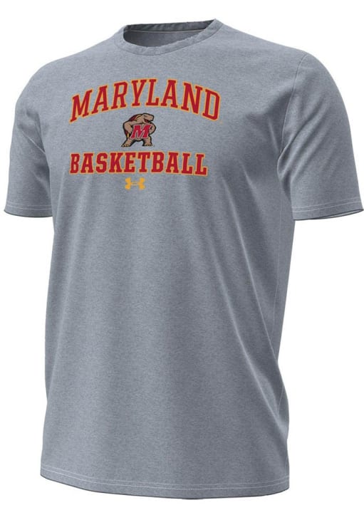 Display your team spirit with this remarkable Maryland Terrapins Under Armour Grey Basketball Performance Short Sleeve T Shirt! The Maryland Short Sleeve Tee showcases a screen print team graphic on center chest that truly sets it apart. Stand out from the crowd and proudly declare your allegiance to the Terrapins with this exceptional Grey Maryland T Shirt. Go Terps!