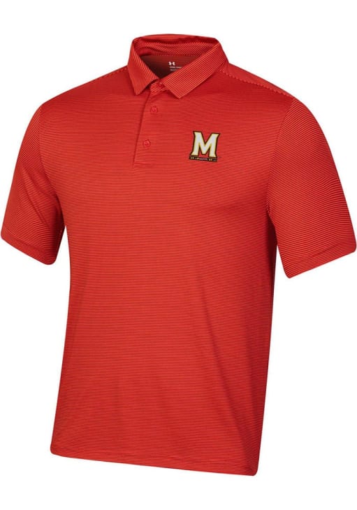 Enhance your professional style with this striking Mens Red Short Sleeve Polo Shirt! Showcase your team pride among colleagues with this exceptional Maryland Red Wordmark T2 Stripe Short Sleeve Polo. Stand out and make a statement in this Maryland Terrapins Short Sleeve Polo, featuring a team logo embroidered on left chest that adds a touch of distinction to your look.