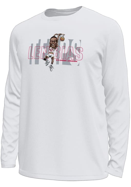 Embrace the spirit of your favorite player in this Maryland Terrapins White Mens Basketball Len Bias Tech Stretch Len Bias Long Sleeve Player Tee! This Player T Shirt features a team graphic on center chest, so everyone will know you cheer for Maryland, Len Bias! This is the perfect Terrapins Player Tee for game days. Go Terps!