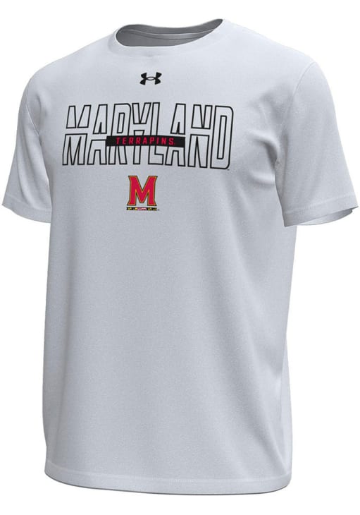 Stay cool and display your Maryland Terrapins spirit in this White Flat Name Tech T Shirt. This Short Sleeve is the perfect Tee for working out, heading to class, or cheering on the Terrapins. Showcasing a screen print team graphic, there's no mistaking your Maryland Terrapins pride in this Terrapins Flat Name Tech T Shirt!