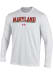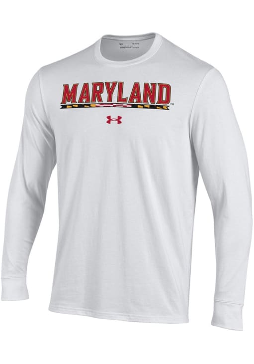 Show your Maryland Terrapins spirit in this Maryland White T Shirt! This Maryland Maryland Bar Performance Long Sleeve T Shirt makes a great layer for cooler nights cheering on the Terrapins. Featuring a screen print graphics, this Maryland Terrapins Long Sleeve Tee is an essential addition for every fan. Go Terps!
