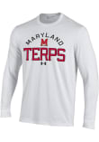 Show your Maryland Terrapins spirit in this Maryland White T Shirt! This Maryland No. 1 Sleeve Hit Perf Cotton Long Sleeve T Shirt makes a great layer for cooler nights cheering on the Terrapins. Featuring a team name and mascot screenprinted on front chest, this Maryland Terrapins Long Sleeve Tee is an essential addition for every fan. Go Terps!
