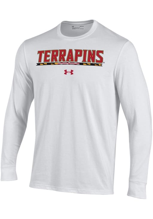Show your Maryland Terrapins spirit in this Maryland White T Shirt! This Maryland Terrapins Bar Performance Long Sleeve T Shirt makes a great layer for cooler nights cheering on the Terrapins. Featuring a screen print graphics, this Maryland Terrapins Long Sleeve Tee is an essential addition for every fan. Go Terps!