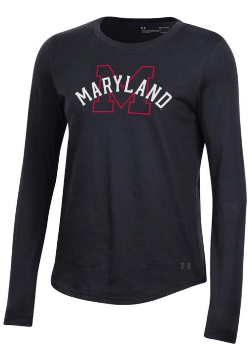 Show your Maryland Terrapins spirit in this Maryland Black T-Shirt! This Maryland Preformance Long Sleeve T-Shirt makes a great layer for cooler nights cheering on the Terrapins. Featuring a screen print team name and logo on center chest with team logo on center back, this Maryland Terrapins Long Sleeve LS Tee is an essential addition for every fan. Go Terps!