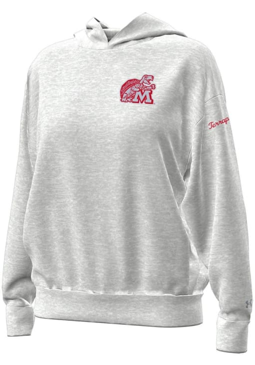 Embrace your Terrapins pride and showcase your team spirit with confidence in this Maryland Terrapins Long Sleeve Hoodie! Stay warm and stylish with the Maryland Womens Grey Icon Fleece Hooded Sweatshirt. Designed with chenille patch of team logo, this Terrapins Long Sleeve Hoodie is a must-have for dedicated fans.