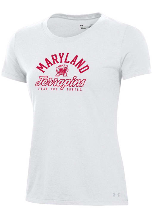 Display your team spirit with this remarkable Maryland Terrapins White Preformance Short Sleeve T-Shirt! The Maryland Short Sleeve Tee showcases a screen print team name and logo center chest that truly sets it apart. Stand out from the crowd and proudly declare your allegiance to the Terrapins with this exceptional White Maryland T-Shirt. Go Terps!