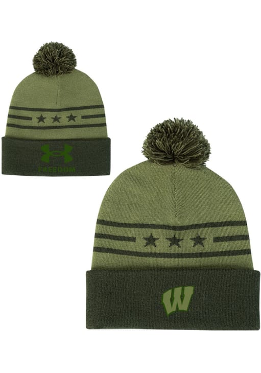 Stay in style during the cold part of the year with this Wisconsin Badgers Mens UA Freedom Cuff Pom Knit Hat! You can show your Badgers spirit with this Knit Hat that features a team-centric military appreciation design.