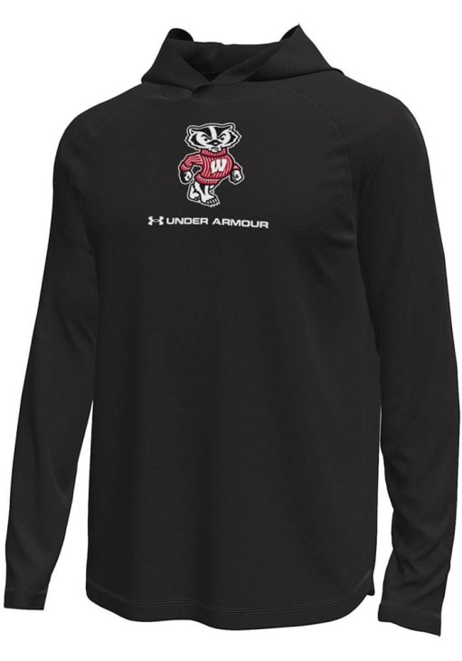 Make a bold statement in this Wisconsin Badgers Black Logo Tech Stretch Long Sleeve Hood! This Wisconsin Long Sleeve Hoodie features a screen print team graphic. Go Badgers!