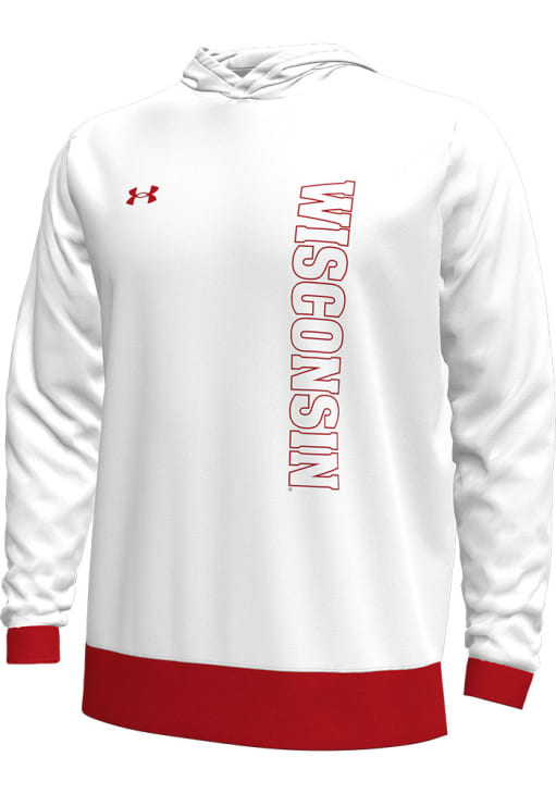 Product Details Product Details 90% Polyester/10% Spandex breathable, 4-way stretch fabric.Lapover hood constructionContrast color sleeve hem and waistbandOffical Basketball Pregame Shooter Shirt for teamLoose fitFit: Runs LargeRelaxed Fit90 % POLYESTER / 10% SPANDEXMachine wash coldImported Officially Licensed Make a bold statement in this Wisconsin Badgers White Knockout Shooter Long Sleeve Hood! This Wisconsin Long Sleeve Hoodie features a screenprint vertical team name on left chest and full back team logo. Go Badgers!