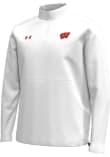 Embrace the warmth and showcase your Badgers pride with our Wisconsin Badgers Long Sleeve Qtr Zip Pullover. This Mens White Sideline Motivate Long Sleeve Pullover offers a heat sealed team graphic on left chest with woven school color tab at bottom right hem for the perfect combination of comfort and style. Elevate your everyday look with this must-have Wisconsin Badgers Long Sleeve Qtr Zip Pullover.