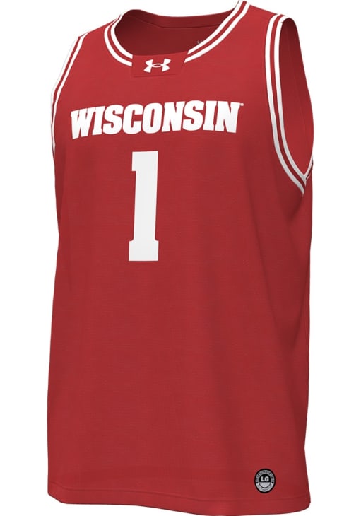 Stand out and showcase your unwavering Wisconsin pride with confidence in this striking Wisconsin Badgers Mens Red Replica 1 Jersey! Make a statement on gameday with this eye-catching Wisconsin Badgers Basketball Jersey, which features a screenprint of team name on front and number on front and back.