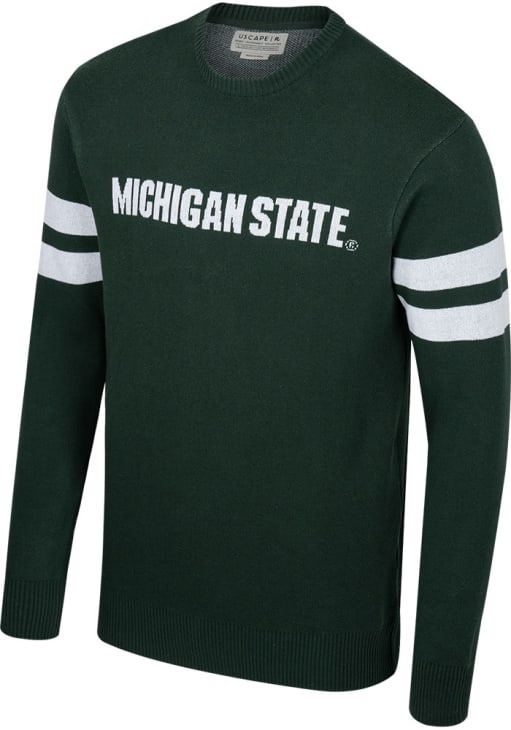 Prepare for an unforgettable game day experience with the Michigan State SpartansMens Green Olympic Jacquard Sweater. This Spartans Long Sleeve Dress Shirt features a a knitted team graphic on front chest. Stay warm and comfortable throughout the event with this Mens MSU Spartans Sweater.