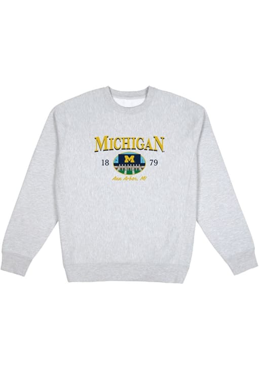 Mens Michigan Wolverines Grey Uscape New Heights Crew Sweatshirt