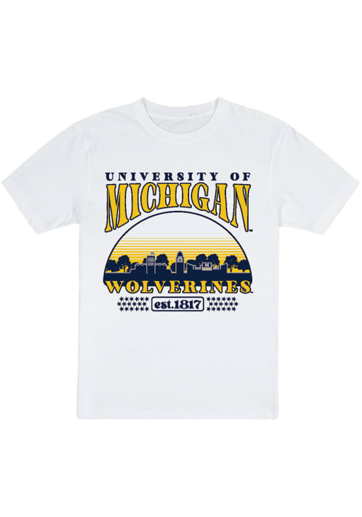 Display your team spirit with this remarkable Michigan Wolverines White Garment Dyed Stars Short Sleeve T Shirt! The Michigan Short Sleeve Tee showcases a 100% Cotton White Garment Dyed Tee With printed logo graphic that truly sets it apart. Stand out from the crowd and proudly declare your allegiance to the Wolverines with this exceptional White Michigan T Shirt. Go Michigan!