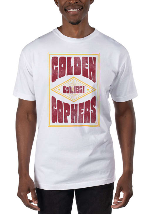 Display your team spirit with this remarkable Minnesota Golden Gophers White Garment Dyed Poster Short Sleeve T Shirt! The Minnesota Short Sleeve Tee showcases a 100% Cotton White Garment Dyed Tee With printed logo graphic that truly sets it apart. Stand out from the crowd and proudly declare your allegiance to the Golden Gophers with this exceptional White Minnesota T Shirt. Fight, Gophers!
