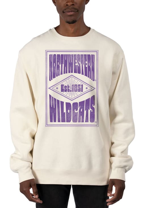 Mens Northwestern Wildcats White Uscape Heavyweight Poster Crew Sweatshirt