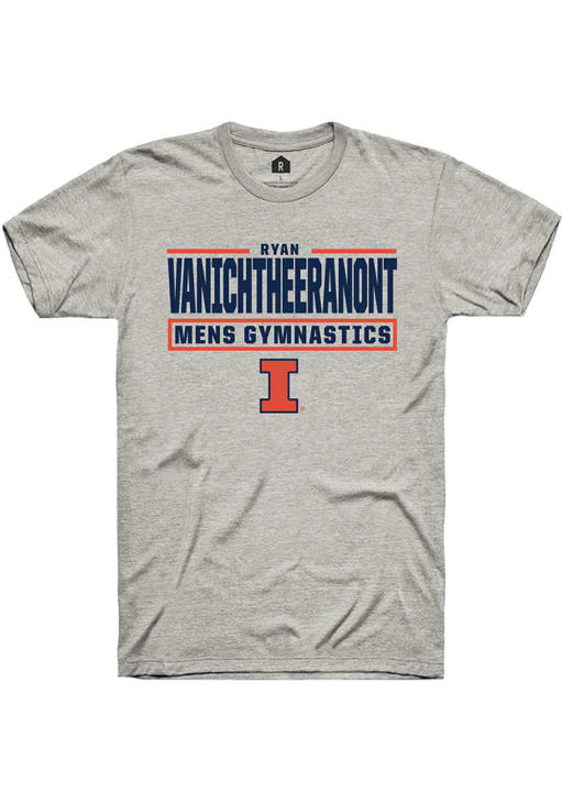 Ryan Vanichtheeranont Ash Illinois Fighting Illini NIL Stacked Box Short Sleeve T Shirt