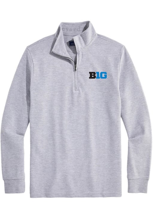 Embrace the warmth and showcase your Big Ten pride with our Big Ten Long Sleeve Qtr Zip Pullover. This Mens Graphite Clubhouse Long Sleeve Pullover offers a team logo on left chest for the perfect combination of comfort and style. Elevate your everyday look with this must-have Big Ten Long Sleeve Qtr Zip Pullover.