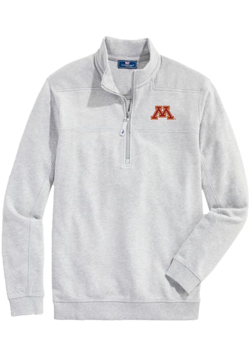 Embrace the warmth and showcase your Golden Gophers pride with our Minnesota Golden Gophers Long Sleeve Qtr Zip Pullover. This Mens Grey Shep Shirt Long Sleeve Pullover offers a team logo on left chest for the perfect combination of comfort and style. Elevate your everyday look with this must-have Minnesota Golden Gophers Long Sleeve Qtr Zip Pullover.