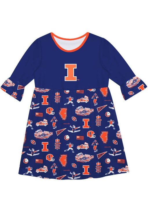 Support for your favorite team in this Toddler Blue Illinois Fighting Illini Impressions Long Sleeve Dress! This Dress features a hand sketched artwork perfect to keep the new fan cheering for your favorite team, so everyone will know your favorite team is the Illinois! This is the perfect Illinois Fighting Illini Toddler Dress for wearing to game day or everyday. Go, Illini, Go!