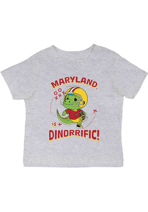 Product Details Product Details made with top-quality long-lasting cotton knit fabriccomfy, strong and breathableawesome screen-printed graphics Officially Licensed Every future Maryland Terrapins fan need a Grey Infant Short Sleeve Tee. This Dino-Riffic T-Shirt features a screen printed team graphic.