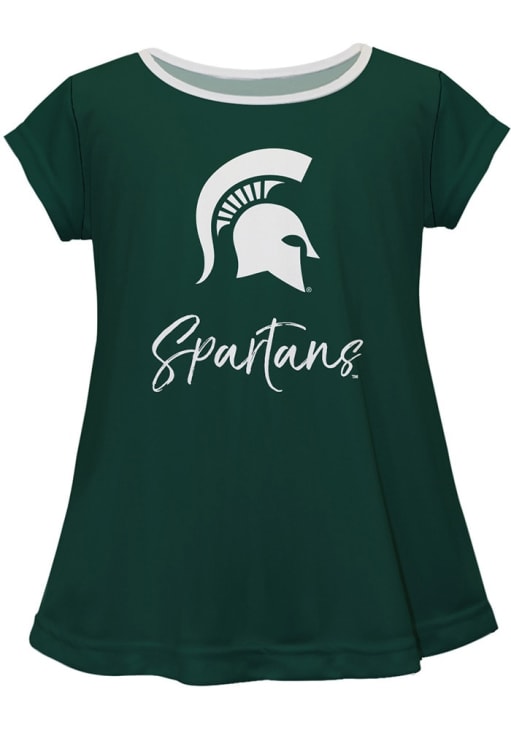 Support your favorite team in this Infant Girls Green Michigan State Spartans Script Blouse Short Sleeve T-Shirt! This T-Shirt features a contrast piping on neck and team logo and script mascot name on chest, so everyone will know your favorite team is the MSU! This is the perfect Michigan State Spartans Infant Girls T-Shirt for wearing to game day or everyday. Go Spartans!
