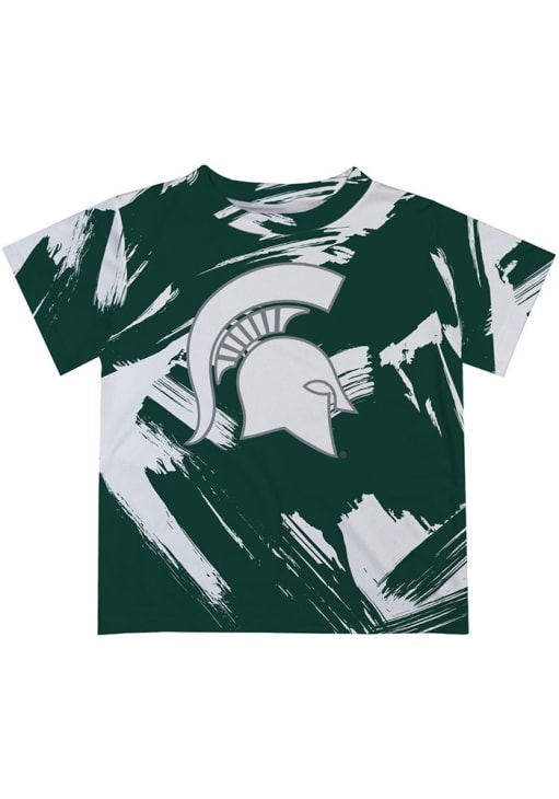 Product Details Product Details Moisture wicking breathable soft natural feel knit fabric.Lightweight fabric for easy comfortSublimated graphics and colorsCrewneck overstitched collarDouble needle cover stitch finished hemlines100% POLYESTER Officially Licensed Every future Michigan State Spartans fan need a Green Infant Short Sleeve Tee. This Paint Brush T-Shirt features a paint brush print.