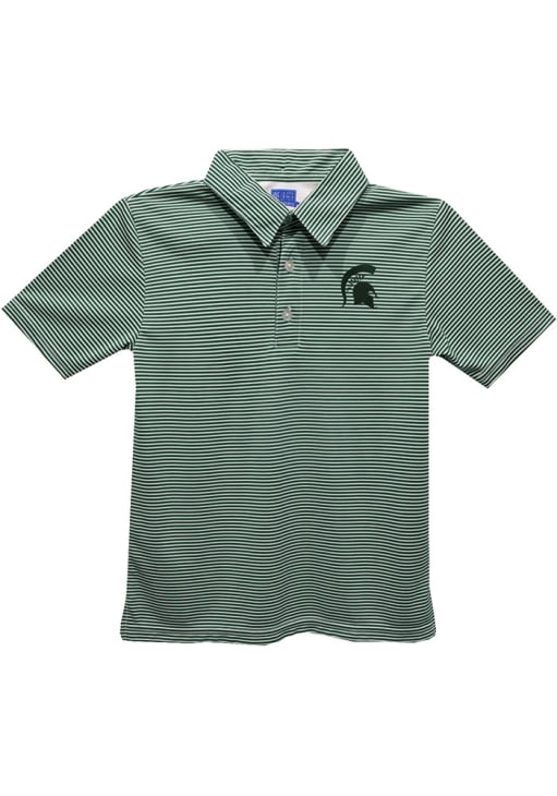 Your little Michigan State Spartans fan will be the cutest at the game in this Green Michigan State Spartans Pencil Stripe Polo Shirt. This Pencil Stripe Polo Shirt features a 3-button placket, and button on the back of the collar.