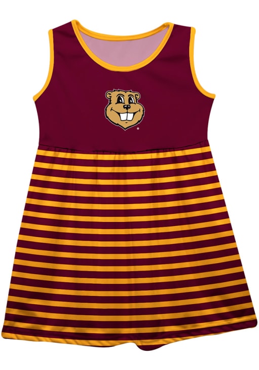 Let your baby's unique style show in this Minnesota Golden Gophers Baby Girls Dress. Featuring a striped skirt and team logo on solid color chest, this Maroon Golden Gophers Dress is the perfect way to show off your style and pride for the Minnesota Golden Gophers.