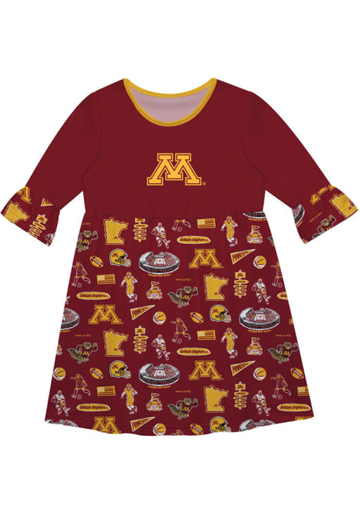 Let your unique style show in this Minnesota Golden Gophers Girls Dress. Featuring a hand sketched artwork perfect to keep the new fan cheering for your favorite team, this Maroon Golden Gophers Dress is the perfect way to show off your style and pride for the Minnesota Golden Gophers.
