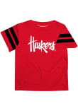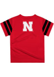 Product Details Product Details Moisture wicking breathable soft natural feel knit fabric.Lightweight fabric for easy comfortSublimated graphics and colorsCrewneck overstitched collarDouble needle cover stitch finished hemlines100% POLYESTER Officially Licensed Every future Nebraska Cornhuskers fan need a Red Infant Short Sleeve Tee. This Stripes T-Shirt features a stripes on sleeves.