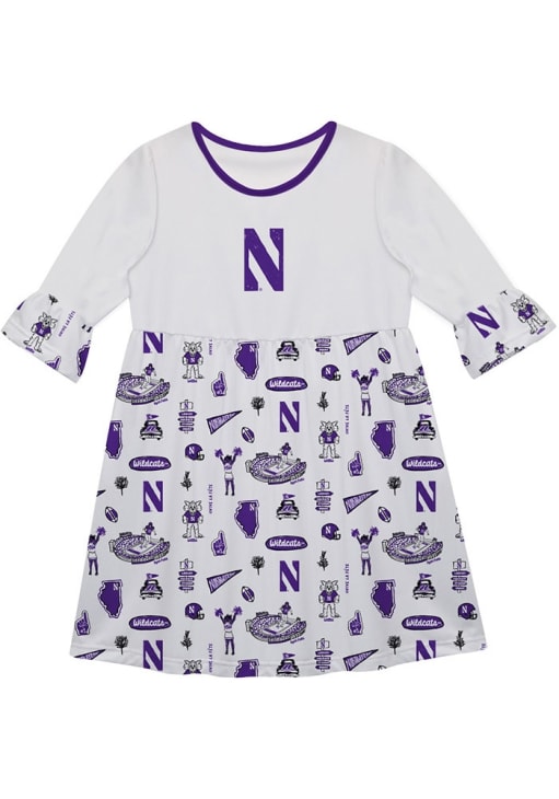 Girls Northwestern Wildcats White Vive La Fete Sandie Impressions Short Sleeve Dress