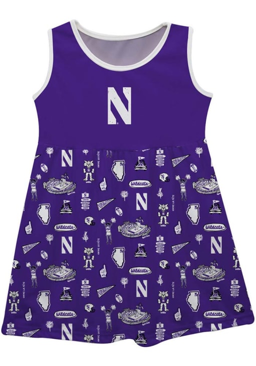 Let your unique style show in this Northwestern Wildcats Toddler Girls Dress. Featuring a hand sketched artwork perfect to keep the new fan cheering for your favorite team, this Purple Wildcats Dress is the perfect way to show off your style and pride for the Northwestern Wildcats.