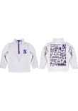 Show your style in this Youth White Northwestern Wildcats Impressions Quarter Zip! This Long Sleeve Shirt features a hand sketched artwork perfect to keep the new fan cheering for your favorite team. You'll be cozy and comfortable heading to the game with the Wildcats Youth Northwestern Wildcats Quarter Zip.