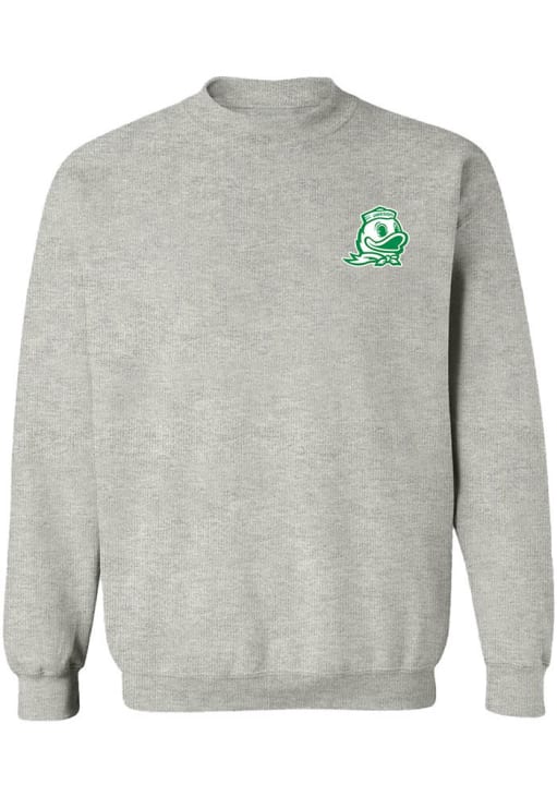 Gear up for the ultimate game day experience with this remarkable Oregon DucksWomens Grey Impressions Crew Sweatshirt! Designed with the true fan in mind, this Ducks Long Sleeve Sweatshirt features a team logo. Stay warm and comfortable with this Womens Oregon Ducks Crew Sweatshirt.