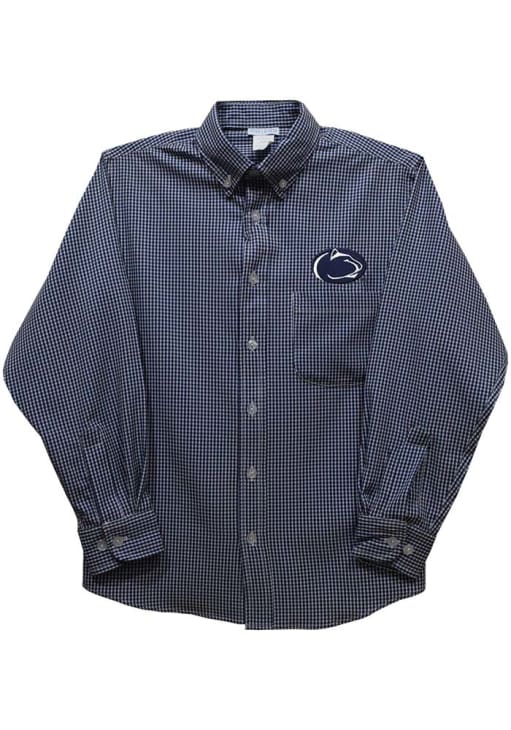 Product Details Product Details Embroidered school logo on chestLong sleeve with cuffsBack yoke with center pleat, button down collarPocket on left side and front button placketMini check print55% COTTON/45% POLYESTERMachine wash warm. Tumble dry, Cool iron. Do not bleach. Wash with like colors. Officially Licensed Style your little Nittany Lions fan in this Navy Blue Penn State Nittany Lions Long Sleeve Polo. This Gingham Polo features a embroidered team logo.