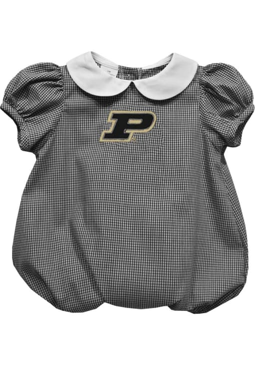 Your little Boilermakers fan will look adorable in this Baby Black Purdue Boilermakers Gingham Collar One Piece! This Purdue Boilermakers Romper features a embroidered team logo on gingham print.