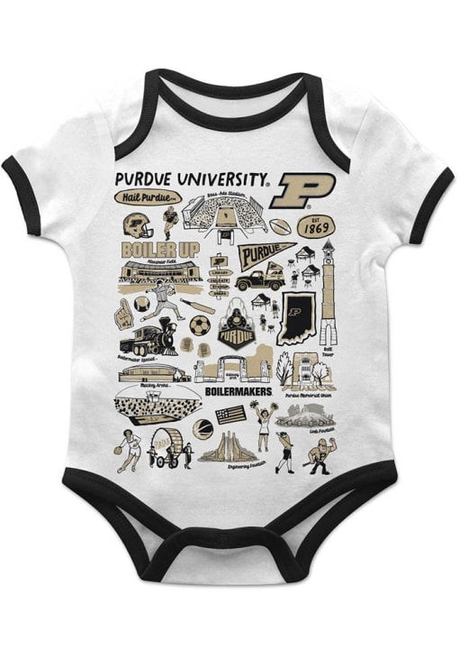 Your little Boilermakers fan will look adorable in this Baby White Purdue Boilermakers Impressions One Piece! This Purdue Boilermakers Romper features a hand sketched artwork perfect to keep the new fan cheering for your favorite team.