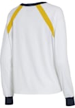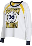 Show your Michigan Wolverines spirit in this Michigan White T-Shirt! This Michigan Vintage Long Sleeve T-Shirt makes a great layer for cooler nights cheering on the Wolverines. Featuring a Screenprint team name and logo on center chest, this Michigan Wolverines Long Sleeve LS Tee is an essential addition for every fan. Go Michigan!