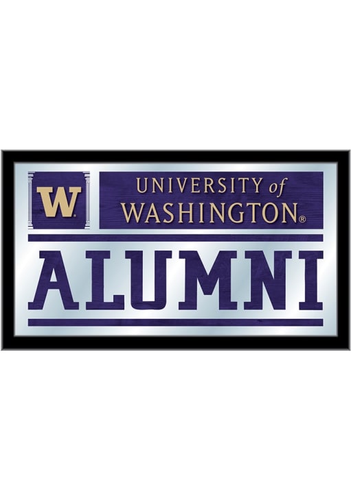 Product Details Product Details Vibrant, full color artwork1/8" glass with Mirrored Accents15" x 26" matt black wood frameSaw-tooth hanger for easy hangingGreat gift for any occasion!USA Officially Licensed This Washington Huskies Alumni Hanging Back Bar Mirror is a great addition to show your Huskies pride. A great match to the game room bar, this Back Bar Mirror features a team logo that will be sure to draw attention to your fan cave.