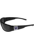 Product Details Product Details Maximum UVA/UVB protectionClassic wrap frames with a sporty twistThe high-quality frames feature flexible hingesPerfect for all outdoor activitiesNon-Polarized Officially Licensed Make sunny gamedays and outings better while professing your Huskies pride with these Washington Huskies Chrome Mens Sunglasses. Rally House has many Mens Sunglasses, all featuring a pair of black wrap sunglasses with team emblem on each arm.