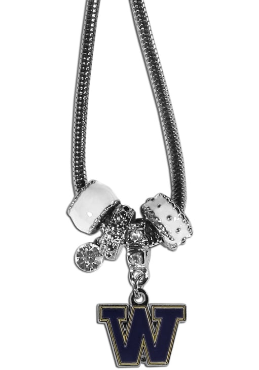 Make every outfit better with a touch of Huskies pride by getting this Washington Huskies Euro Bead Womens Necklace from Rally House! You'll love wearing your Necklace, as it features a 18 inch snake chain with 4 Euro beads and rhinestone charm in team colors.
