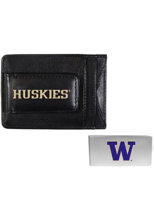 Product Details Product Details Genuine leatherSlim wallet for carrying cardsFeatures a secure magnetic money clip for cashWindowed ID slotComes with a brushed metal finish money clip Officially Licensed Purchase this Washington Huskies Leather w Money Clip Mens Bifold Wallet and showcase your Huskies pride on the go! This Washington Huskies Mens features a strong, magnetic money clip on a leather cardholder.