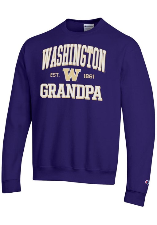 Gear up for the ultimate game day experience with this remarkable Washington HuskiesMens Purple Est. Date Grandpa Powerblend Crew Sweatshirt! Designed with the true fan in mind, this Huskies Long Sleeve Crew Sweatshirt features a printed team graphic. Stay warm and comfortable with this Mens Washington Huskies Crew Sweatshirt.