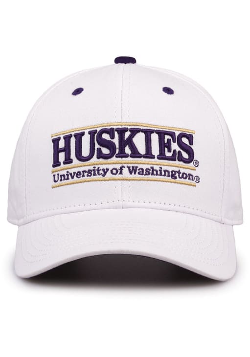 Product Details Product Details MV Sport - Nickname BarTeam nickname wordmark bar logo on frontTeam color accentsSnapback closureTeam logo back embroideryCotton TwillCurved BillHigh CrownLightly StructuredWipe clean with cloth or cleaning kitImported Officially Licensed This White Huskies Adjustable Hat features a front retro design meant to look like a 1980s coaching cap.