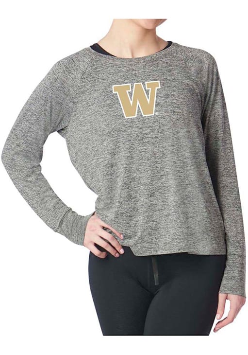 Show your Washington Huskies spirit in this Washington Grey T-Shirt! This Washington Kadi Raglan Long Sleeve T-Shirt makes a great layer for cooler nights cheering on the Huskies. Featuring a team logo on chest, this Washington Huskies Long Sleeve LS Tee is an essential addition for every fan. Bow Down to Washington!