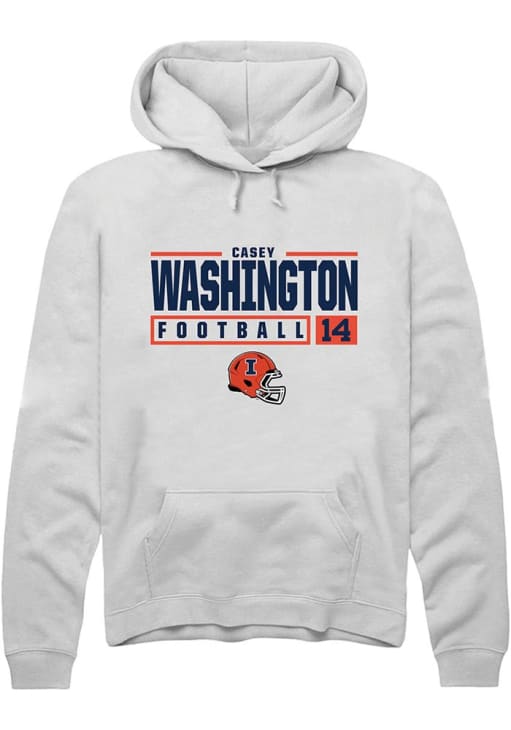 Casey Washington Rally Mens White Illinois Fighting Illini NIL Stacked Box Hooded Sweatshirt